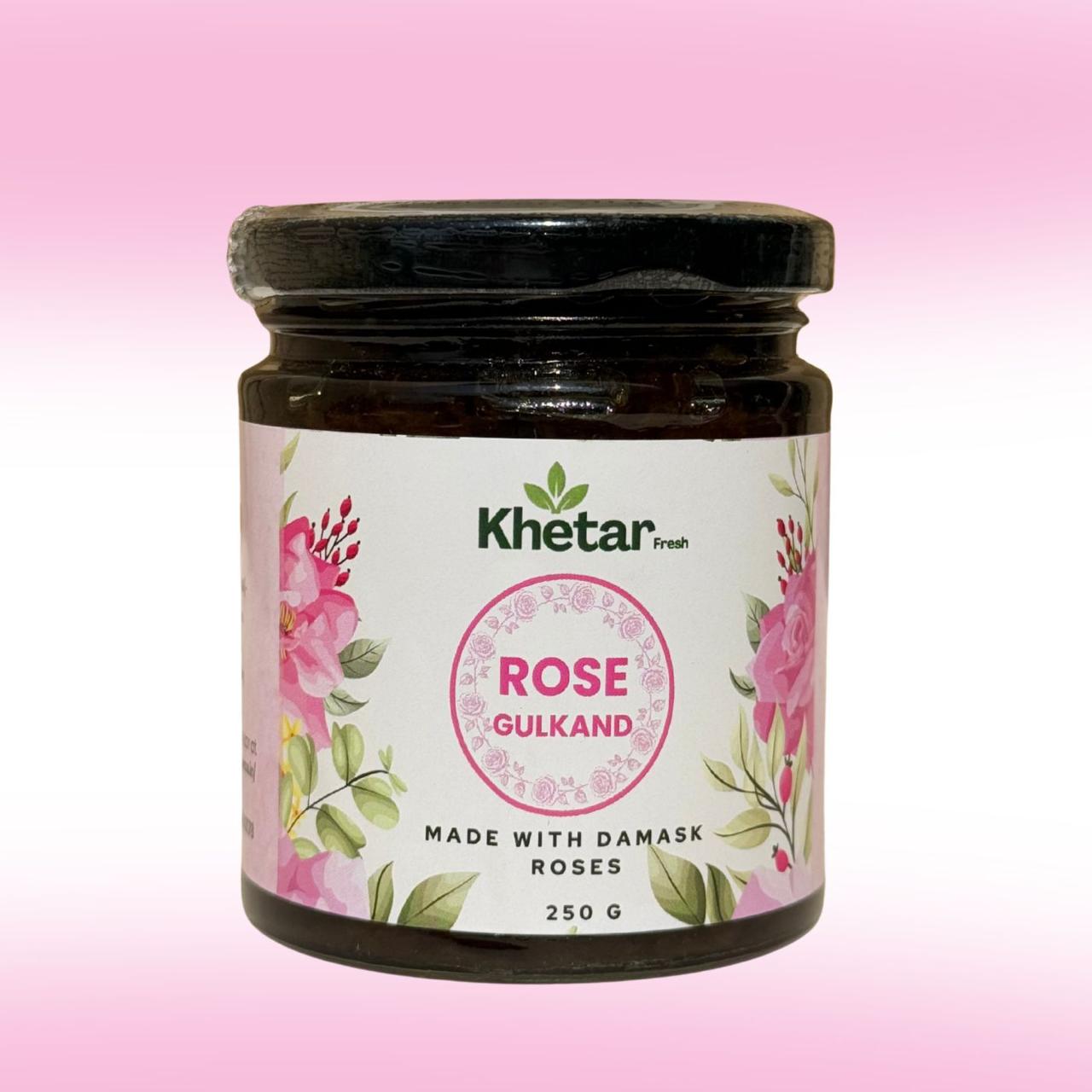 Experience the authentic taste of tradition with Khetar Rose Gulkand, made from hand-picked Damask roses and natural rock sugar. This superfood helps in cooling the body, improving digestion, and enhancing skin glow. Crafted on organic farms, it’s 100% natural, preservative-free, and rich in antioxidants. Perfect as a sweet spread or a refreshing dessert ingredient, Khetar Rose Gulkand brings you the pure floral essence of India’s finest roses.